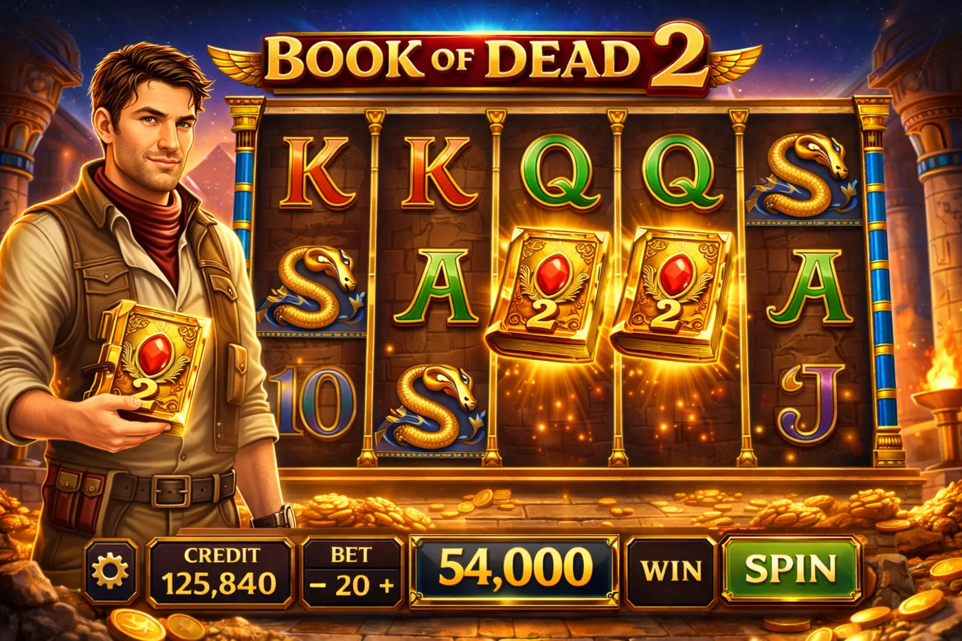 Book of Dead 2 builds on that legacy rather than abandoning it. The Egyptian adventure theme remains central to the atmosphere of the slot. Ancient temples, mysterious artefacts, and the figure of an explorer searching for hidden relics create a setting that fits perfectly with the mechanics of the game. The theme suggests discovery and hidden potential, which mirrors the way the slot behaves during play. Quiet stretches often precede the moments where the game suddenly becomes far more rewarding.